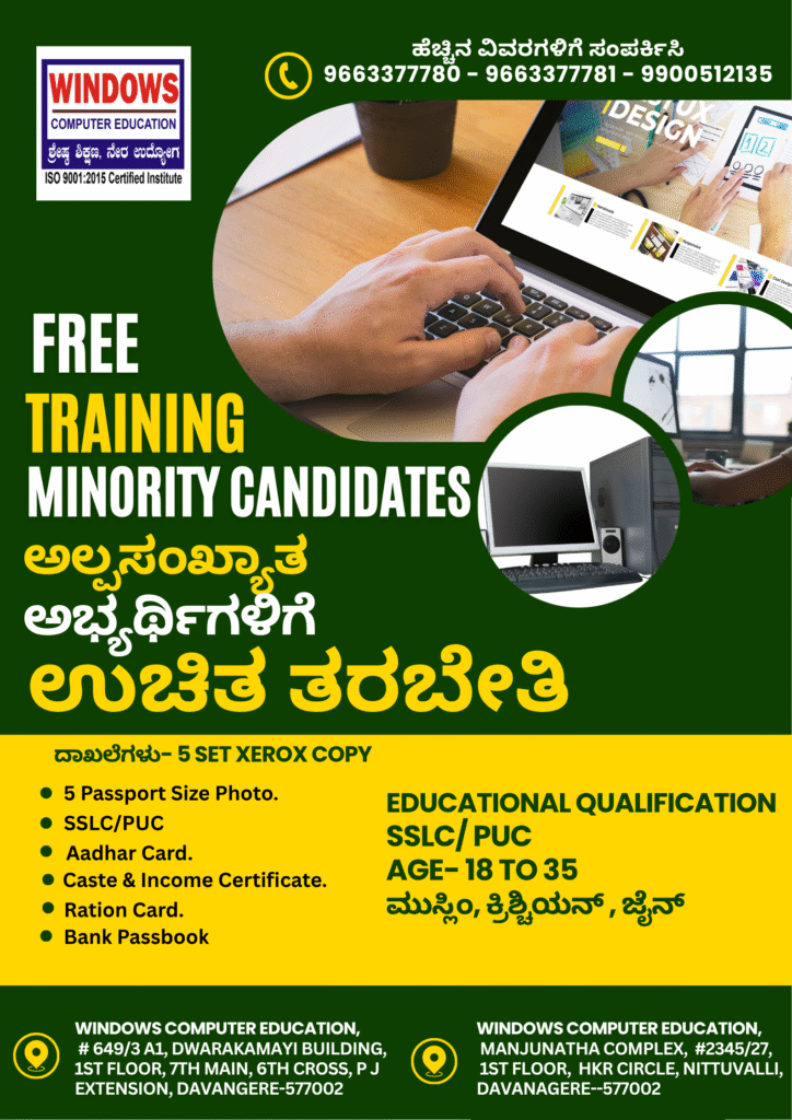ಕರ್ನಾಟಕ ಸರಕಾರದ ಅಲ್ಪಸಂಖ್ಯಾತ ಇಲಾಖೆ ಮೂಲಕ ಉಚಿತ ತರಬೇತಿ ಶಿಬಿರ – Minority Candidates Free Training